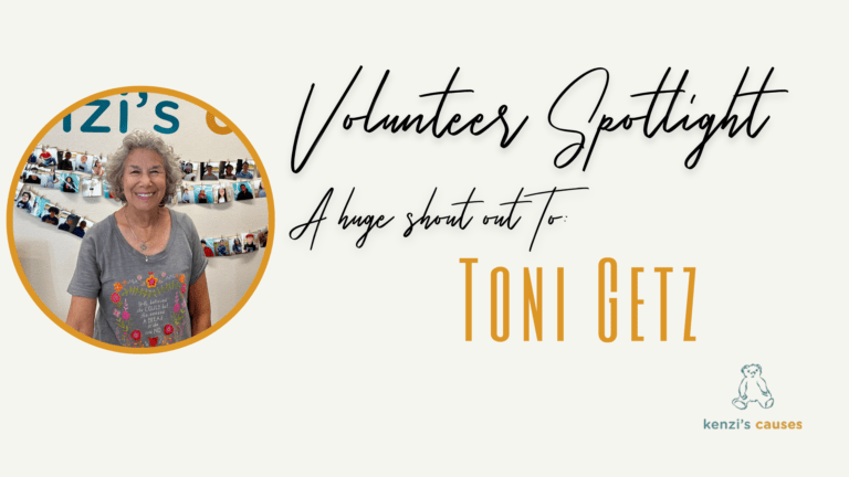 This September, we at Kenzi’s Causes want to take the opportunity to thank one of our incredible volunteers, Toni Getz, for her contributions to our